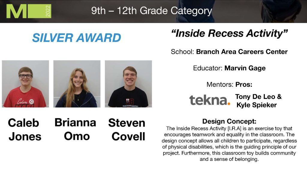 Thank you for encouraging your students’ participation in the Michigan Design Council’s Design Prize.
